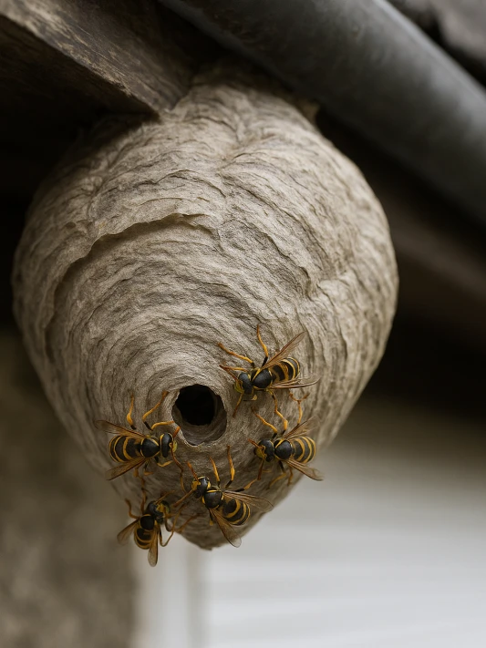 Wespen treten besonders im Frühling und Sommer auf und sind häufig in Gärten, Dachvorsprüngen oder rund um Terrassen zu beobachten.